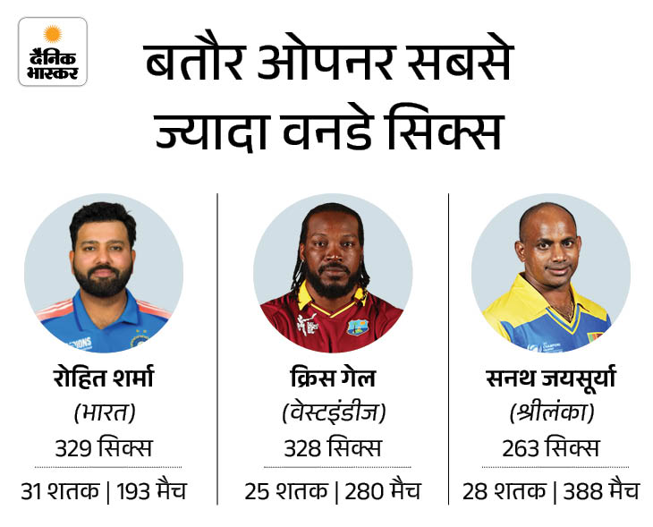 हर बैटिंग पोजिशन को मिलाकर रोहित शर्मा पहले ही वनडे में सबसे ज्यादा छक्के लगाने वाले बैटर हैं। उनके नाम अब तक 357 छक्के हैं।