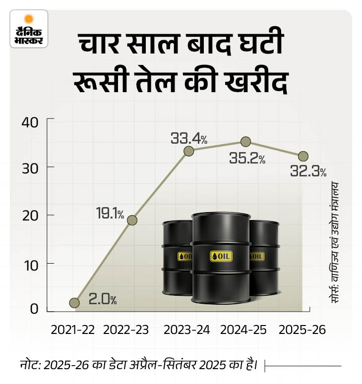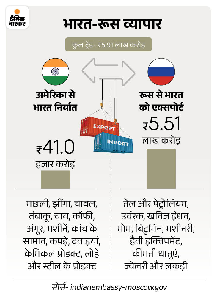ट्रम्प का कहना है कि भारत, रूस से कम कीमत में कच्चा तेल खरीद कर बेच रहा है। इससे पुतिन को यूक्रेन जंग जारी रखने में मदद मिल रही है। मीडिया रिपोर्ट्स के मुताबिक इससे भारत को 37 अरब डॉलर का नुकसान हो सकता है।