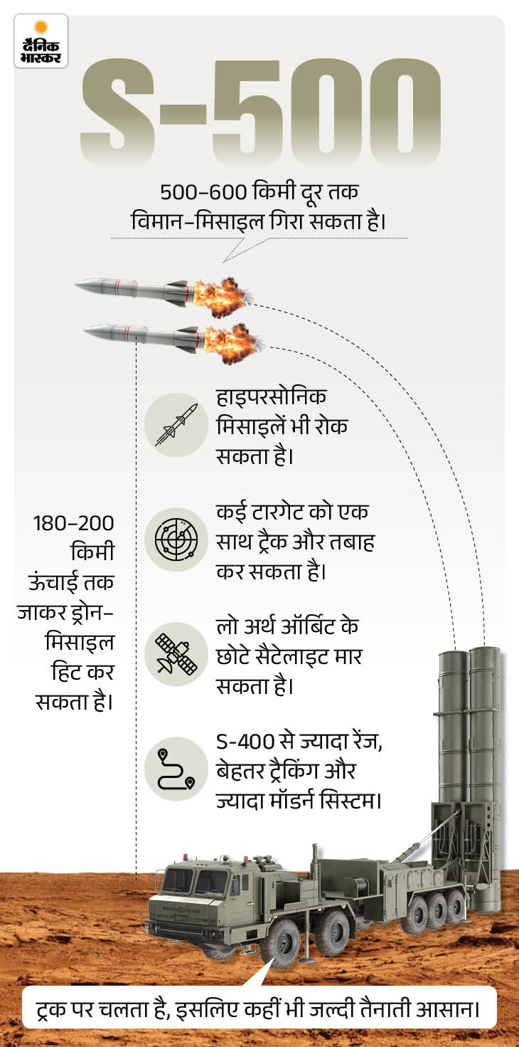 S-500 मिसाइल डिफेंस सिस्टम को लेकर भी भारत की दिलचस्पी बढ़ी है, क्योंकि यह लंबी दूरी से आने वाली मिसाइलों और हाइपरसोनिक मिसाइलों को भी रोक सकता है।