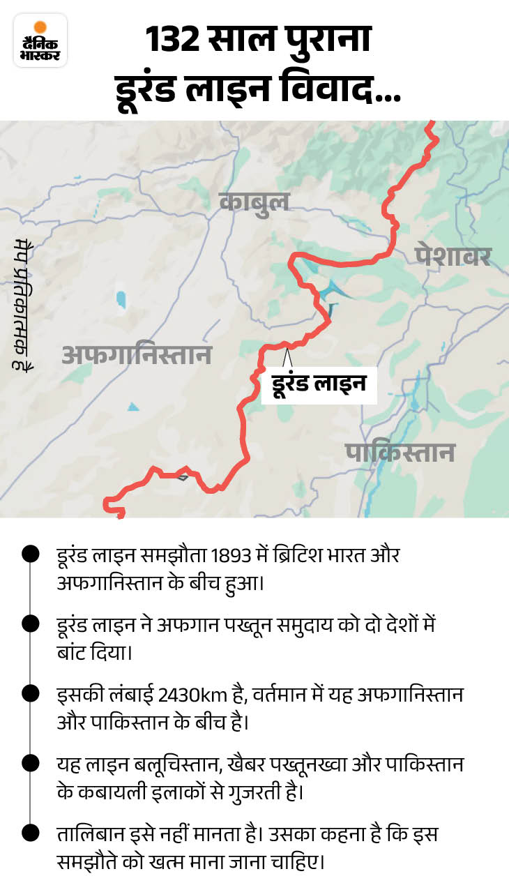अफगानिस्तान और पाकिस्तान के बीच डूरंड लाइन को लेकर लंबे समय से विवाद है। दोनों देश एक-दूसरे पर हमले और आतंकियों को छिपाने का आरोप लगाते रहते हैं। 2021 में अफगानिस्तान हुकूमत पर तालिबान के कंट्रोल के बाद से तनाव और बढ़ गया है।