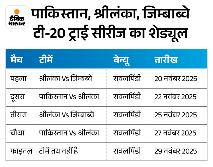 इसके अलावा टूर्नामेंट के सभी मैच रावलपिंडी में आयोजित करने का फैसला भी किया गया है। PCB ने एक बयान में कहा- ‘कार्यक्रम में बदलाव करने का फैसला क्रिकेट (एसएलसी) और जिम्बाब्वे क्रिकेट (जेडसी) के साथ चर्चा के बाद लिया गया है।’