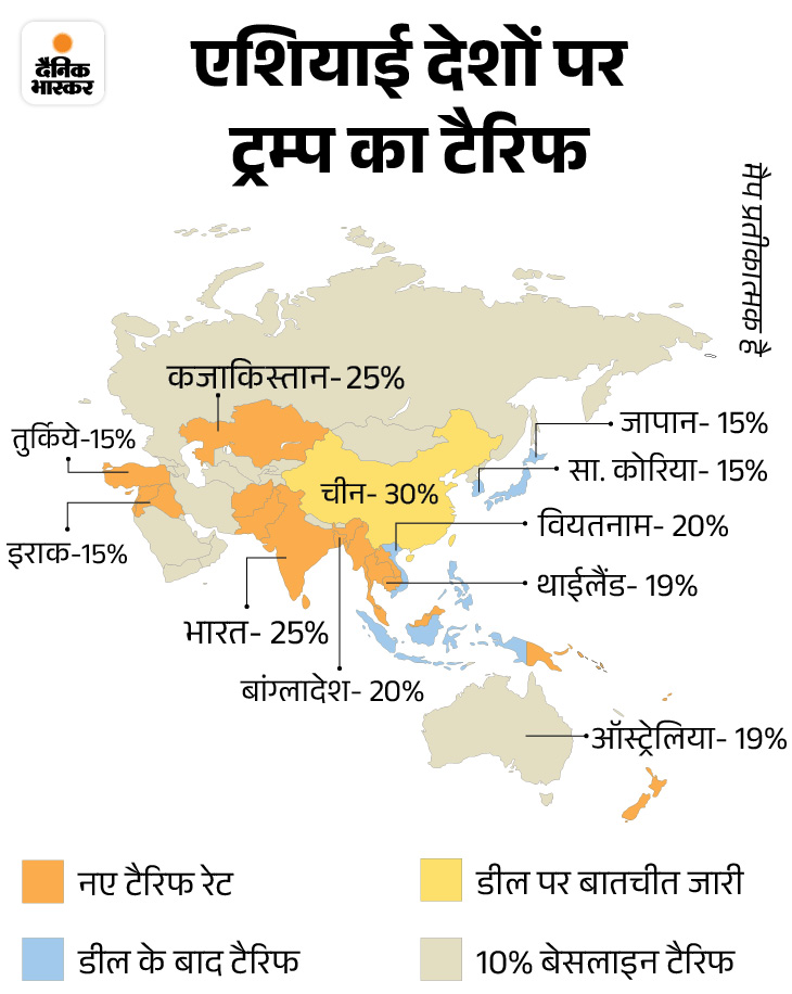 पाकिस्तान-बांग्लादेश पर मेहरबान ट्रम्प, टैरिफ 20% से ज्यादा नहीं: भारत-ब्राजील पर 50% टैरिफ की मार; चीन की GDP 1% गिरने का खतरा