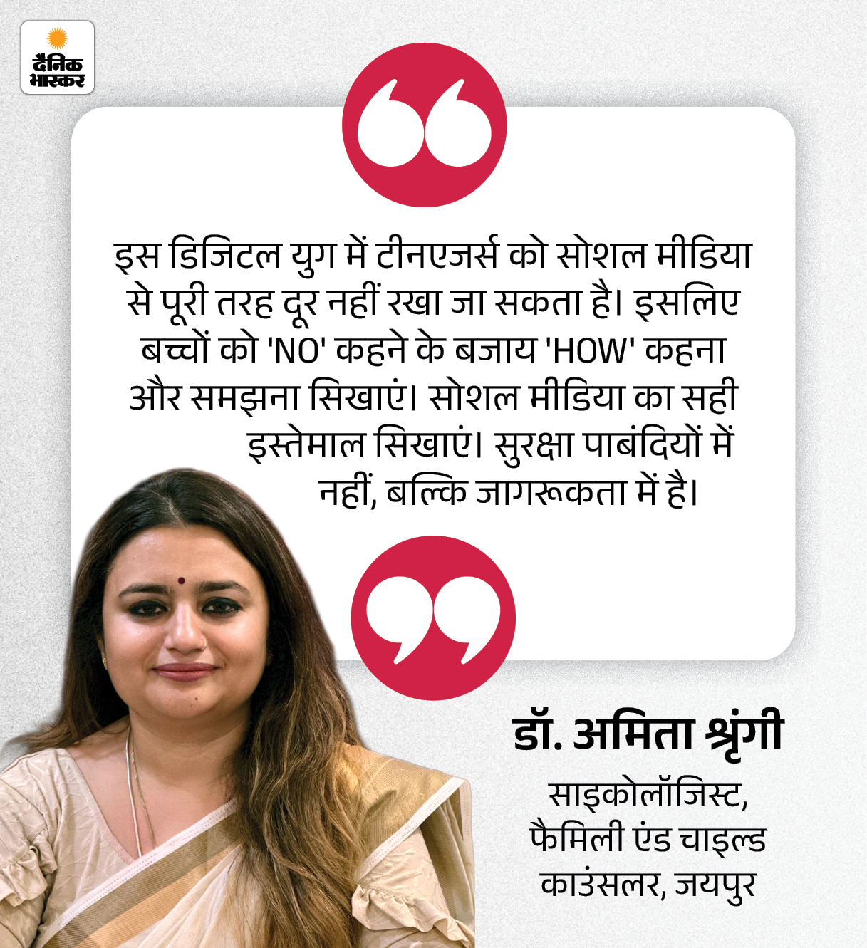 अंत में मैं यही कहूंगी कि टीनएज में सोशल मीडिया का इस्तेमाल पूरी तरह सही या पूरी तरह गलत नहीं होता। फर्क इस बात से पड़ता है कि उसे कितनी समझ, कितने समय और कितनी निगरानी के साथ इस्तेमाल किया जा रहा है। पेरेंट्स का काम रोकना नहीं, बल्कि बच्चों को सुरक्षित और जिम्मेदार यूजर बनाना है। इसके अलावा जब पेरेंट्स खुद संतुलित और समझदार रोल मॉडल बनते हैं, तभी बच्चे भी सोशल मीडिया को जिम्मेदारी से इस्तेमाल करना सीखते हैं।