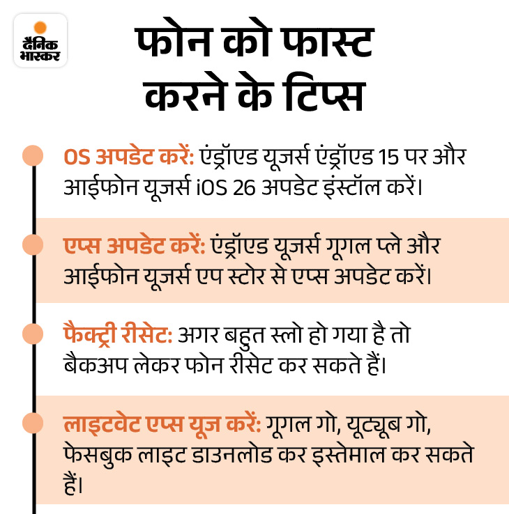 अगर आपको भी इन परेशानियों से बचना है तो कुछ आसान टिप्स फॉलो कर आप फोन को क्लीन और फास्ट कर सकते हैं। इसके साथ ही बैटरी लाइफ भी बढ़ा सकते हैं। चलिए इन ग्राफिक्स की मदद से डिटेल में जानते हैं…