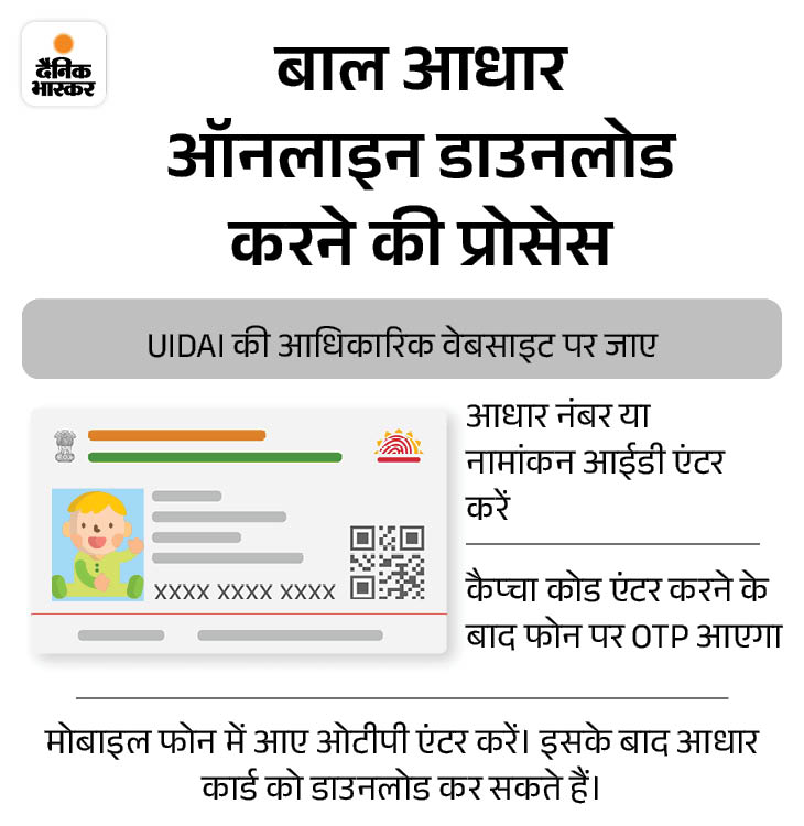 Source: https://www.bhaskar.com/business/news/blue-aadhaar-card-apply-process-explained-children-under-5-years-135099313.html