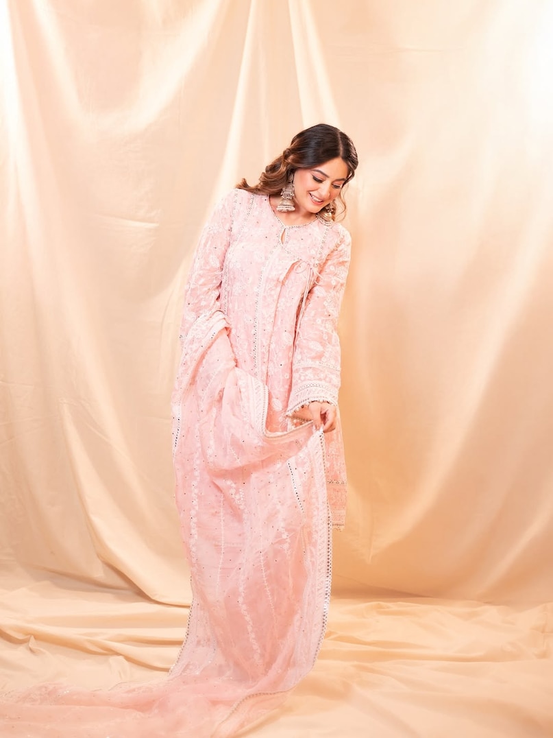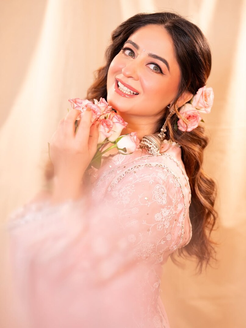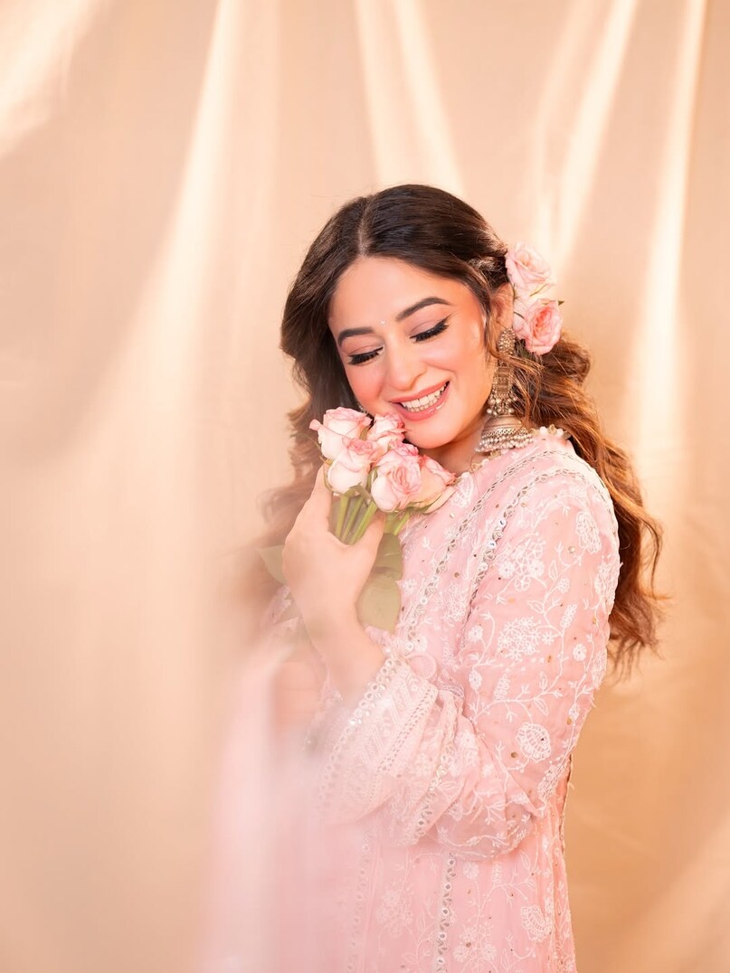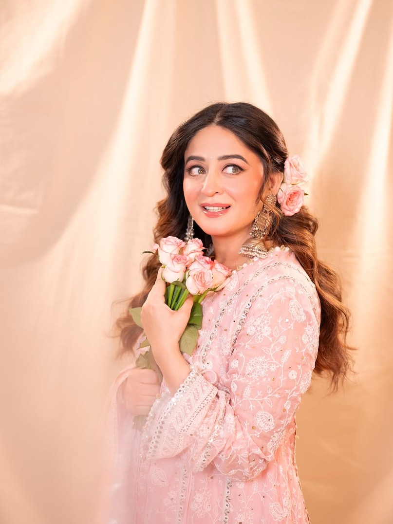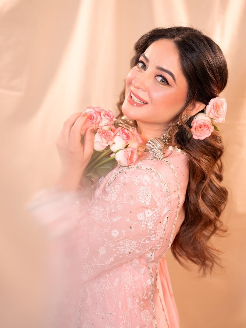 इन तस्वीरों में माही ने हल्का गुलाबी रंग का सूट पहना है, जो उनकी सादगी और शालीनता को निखार रहा है. इस ट्रेडिशनल आउटफिट को उन्होंने सादगी भरे मेकअप के साथ पूरा किया है. माही ने मिनिमल मेकअप किया है, बालों को हल्का कर्ल किया है और बालों में हल्के गुलाबी रंग का गुलाब सजाया है, जिससे उनका पारंपरिक लुक और खास लग रहा है.
