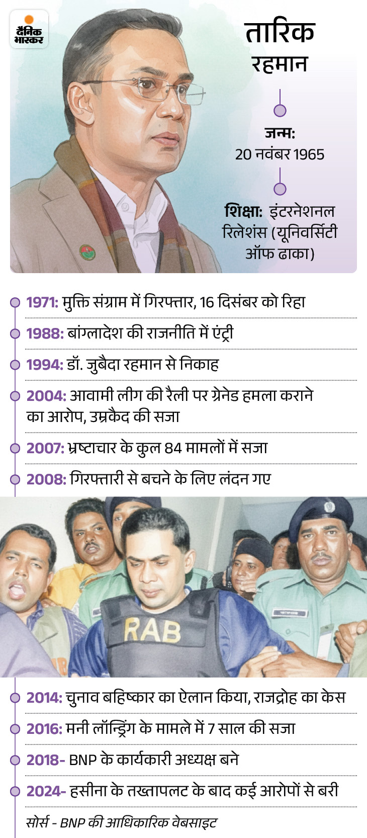 पिछले साल वे बांग्लादेश लौटे और मां के निधन के बाद पार्टी की कमान संभाली। हालिया चुनाव में BNP की जीत के बाद तारिक रहमान देश के प्रधानमंत्री बने।
