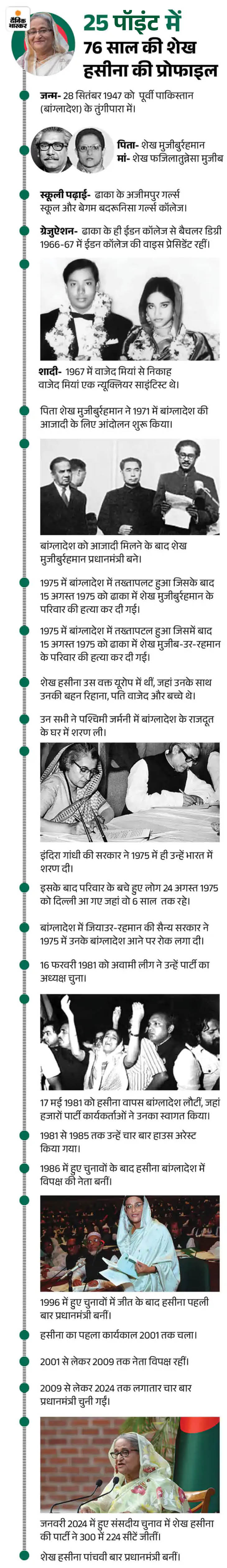 शेख हसीना ने 5 अगस्त को प्रधानमंत्री पद से इस्तीफा दिया था और देश छोड़ना भारत आ गई थीं।