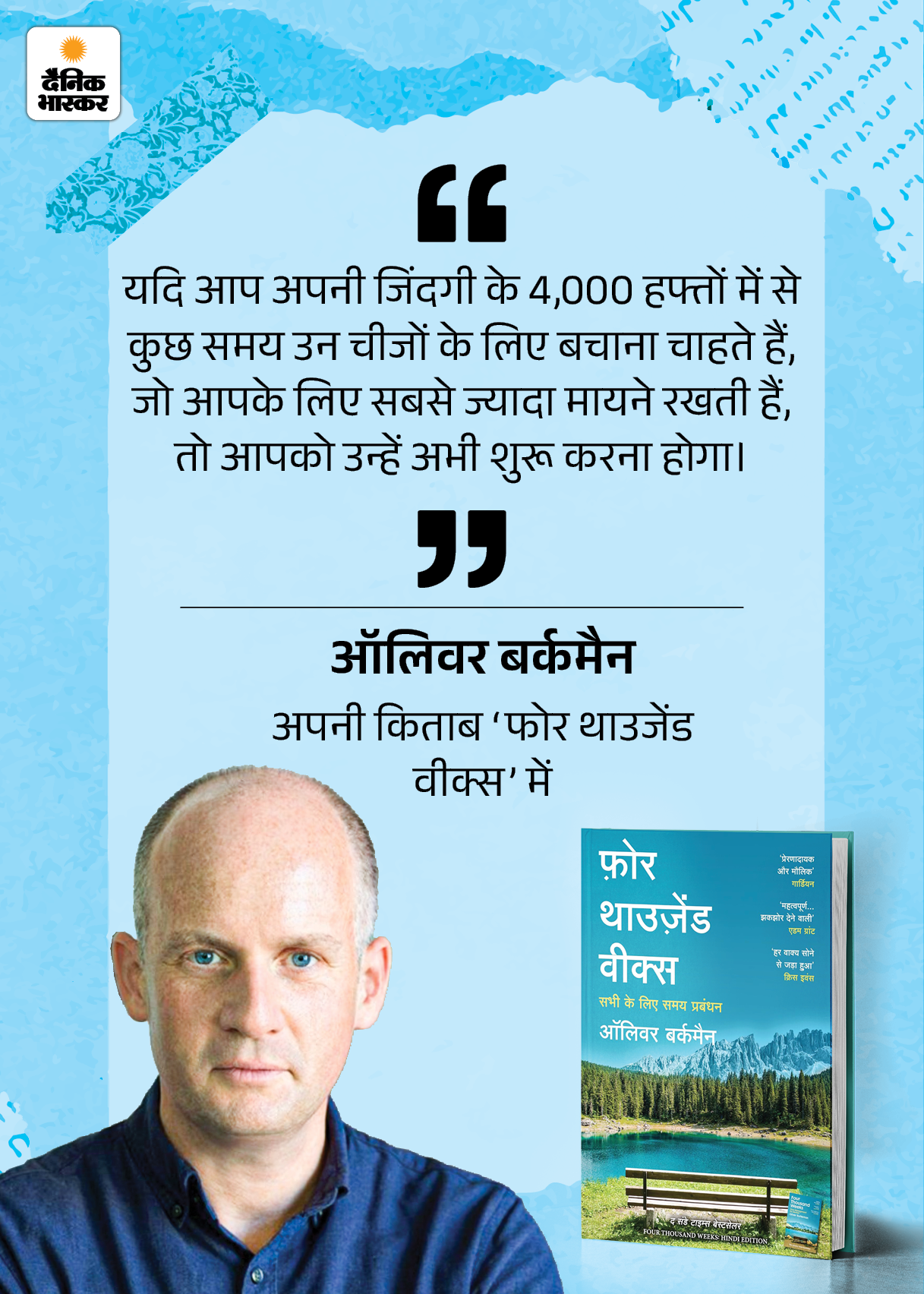 बुक रिव्यू- जिंदगी सिर्फ 4000 हफ्तों की कहानी है: जिस चीज पर वश नहीं, उसे नियति पर छोड़ दो, सब जाने दो, बस खुशी और सुकून रख लो
