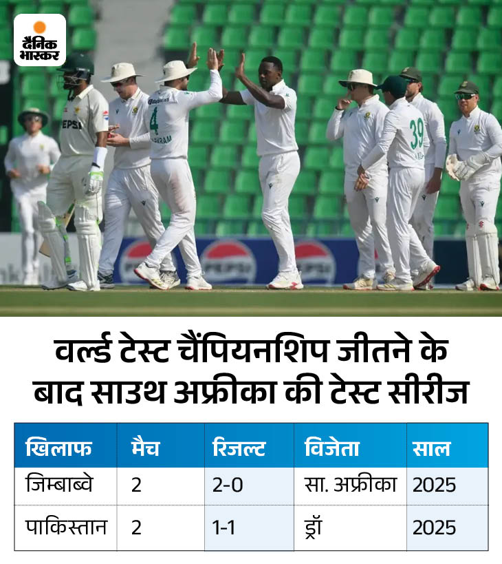 जिम्बाब्वे को 2-0 से हराया, पाकिस्तान में ड्रॉ खेला साउथ अफ्रीका ने 11 से 14 जून के बीच लंदन के लॉर्ड्स स्टेडियम में ऑस्ट्रेलिया को हराकर WTC का खिताब जीता था। इसके बाद अफ्रीकी टीम ने जिम्बाब्वे दौरे पर 2-0 से क्लीन स्वीप किया, जबकि पाकिस्तान दौरे पर खेली गई दो मैचों की सीरीज 1-1 से ड्रॉ रही।