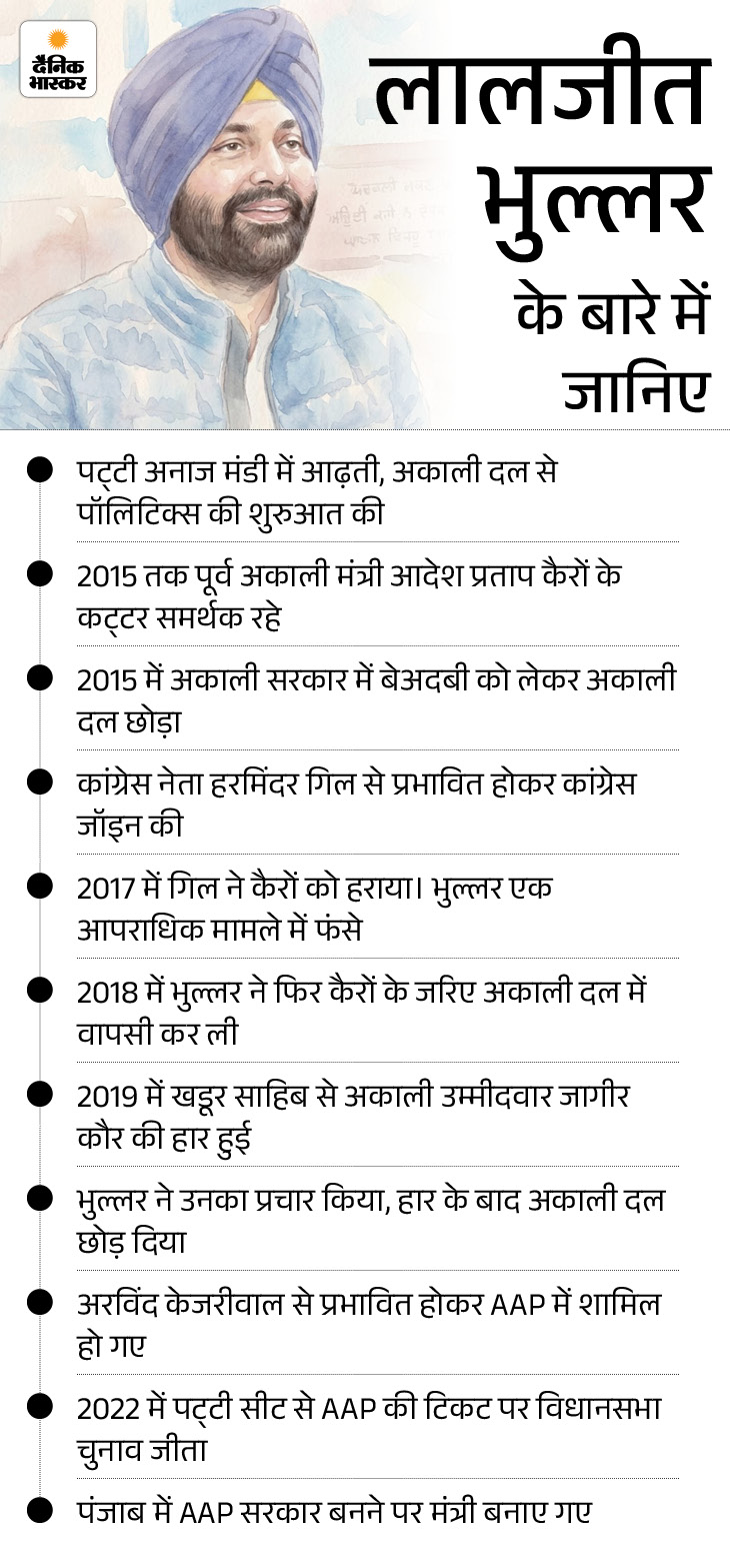 पंजाब स्टेट वेयरहाउस कारपोरेशन के डिस्ट्रिक्ट मैनेजर (DM) गगनदीप सिंह रंधावा के सुसाइड केस के में मुख्य आरोपी लालजीत भुल्लर भले ही पहली बार MLA व मंत्री बने हों, लेकिन AAP के दिल्ली दरबार में उनका रसूख साफ नजर आता है। भुल्लर के तरनतारन में पट्टी स्थ