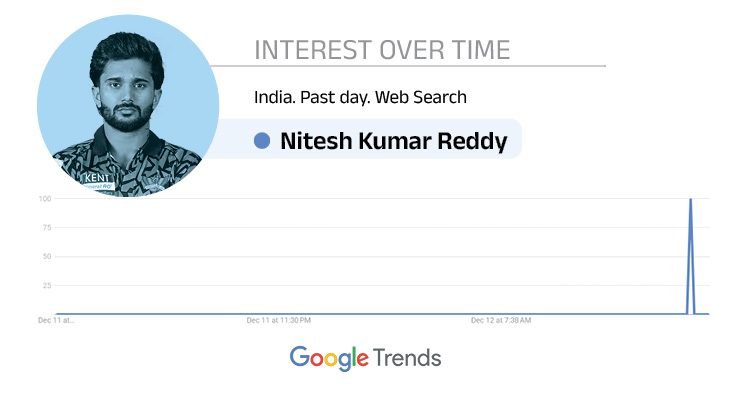 MP के खिलाफ हैट्रिक लेने वाले नीतीश कुमार रेड्डी गूगल में ट्रेंड पर आ गए हैं। उन्हें खूब सर्च किया जा रहा है। देखें गूगल ट्रेंड