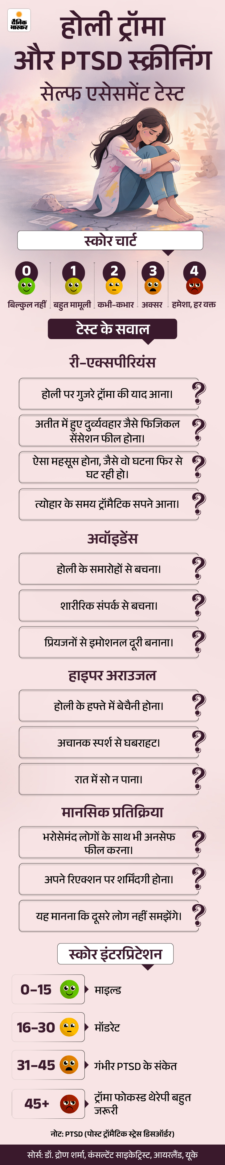 होली ट्रॉमा और PTSD स्क्रीनिंग: सेल्फ एसेसमेंट टेस्ट