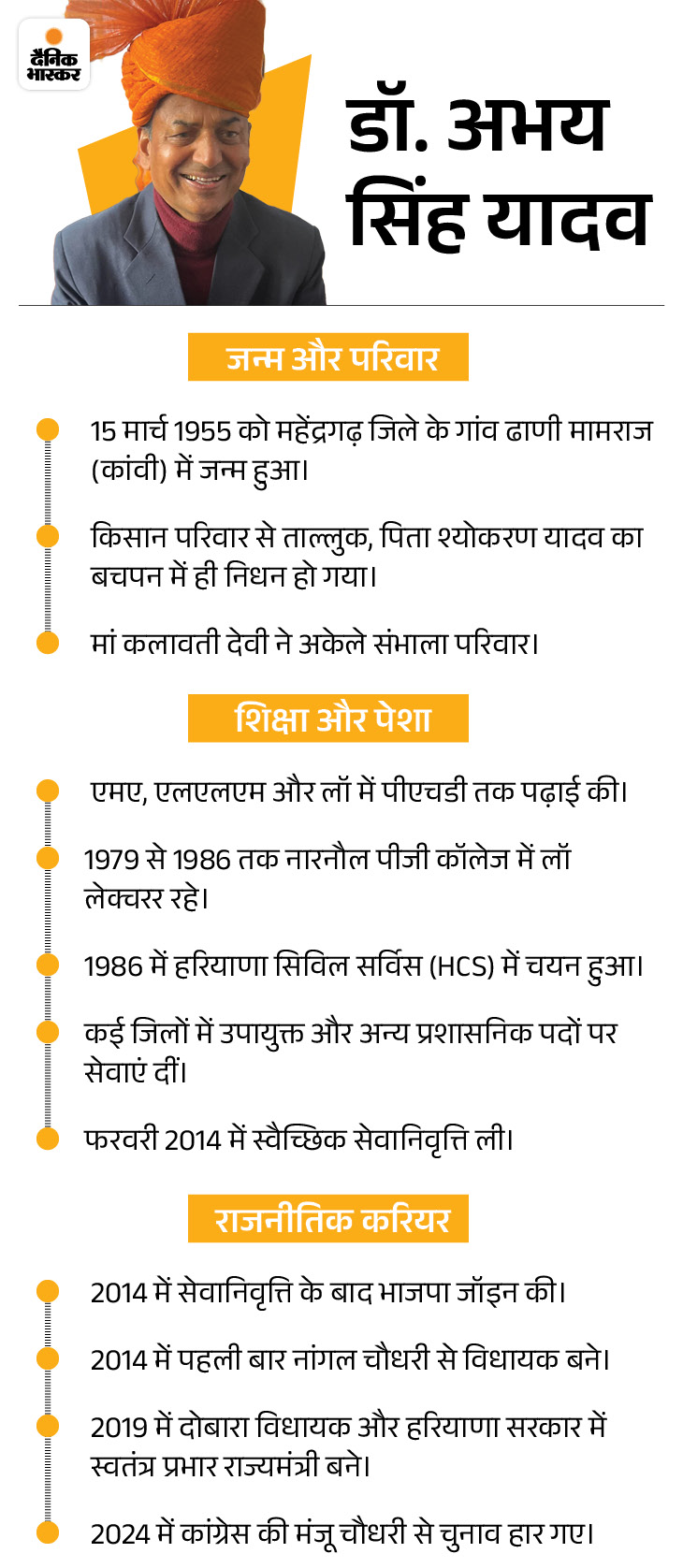 दक्षिण हरियाणा यानी अहीरवाल में भाजपाई फूट खुलकर सामने आई है। नायब सैनी सरकार के पहले कार्यकाल में मंत्री रहे पूर्व IAS अफसर डॉ. अभय सिंह यादव ने अपनी ही पार्टी के केंद्रीय राज्य मंत्री राव इंद्रजीत पर निशाना साधा। एक के बाद एक 2 पोस्ट किए। इनमें राव