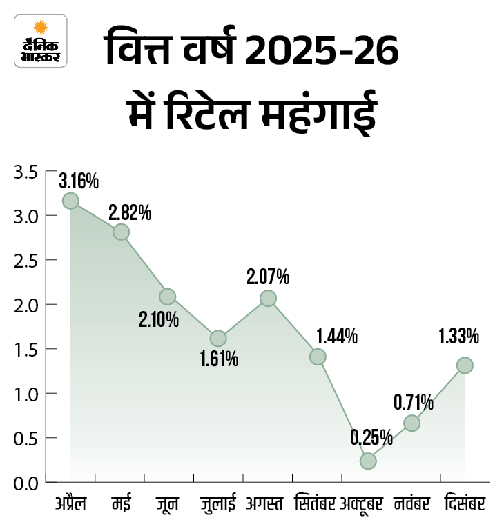 अक्टूबर में रिटेल महंगाई 0.25% के रिकॉर्ड निचले स्तर पर आ गई थी। इसका कारण खाने-पीने की चीजों की कीमतों में कमी थी। ये 2012 CPI सीरीज में सबसे कम महंगाई थी। यानी, ये करीब 14 साल का निचला स्तर रहा था।