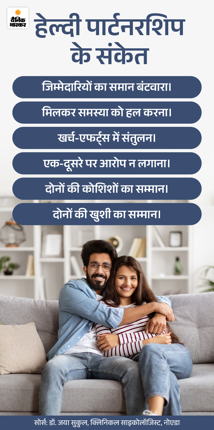 हेल्दी हिसाब बहुत बेसिक होता है। जैसे- घर के काम, खर्च, जिम्मेदारियां मोटे तौर पर बंटी हुई हैं या नहीं? यह हिसाब-किताब रिश्ते को बचाने के लिए होता है, न कि किसी को नीचा दिखाने के लिए। ये रिश्ते को बैलेंस रखता है, जैसे दोस्तों के बीच बिल शेयरिंग होती है।