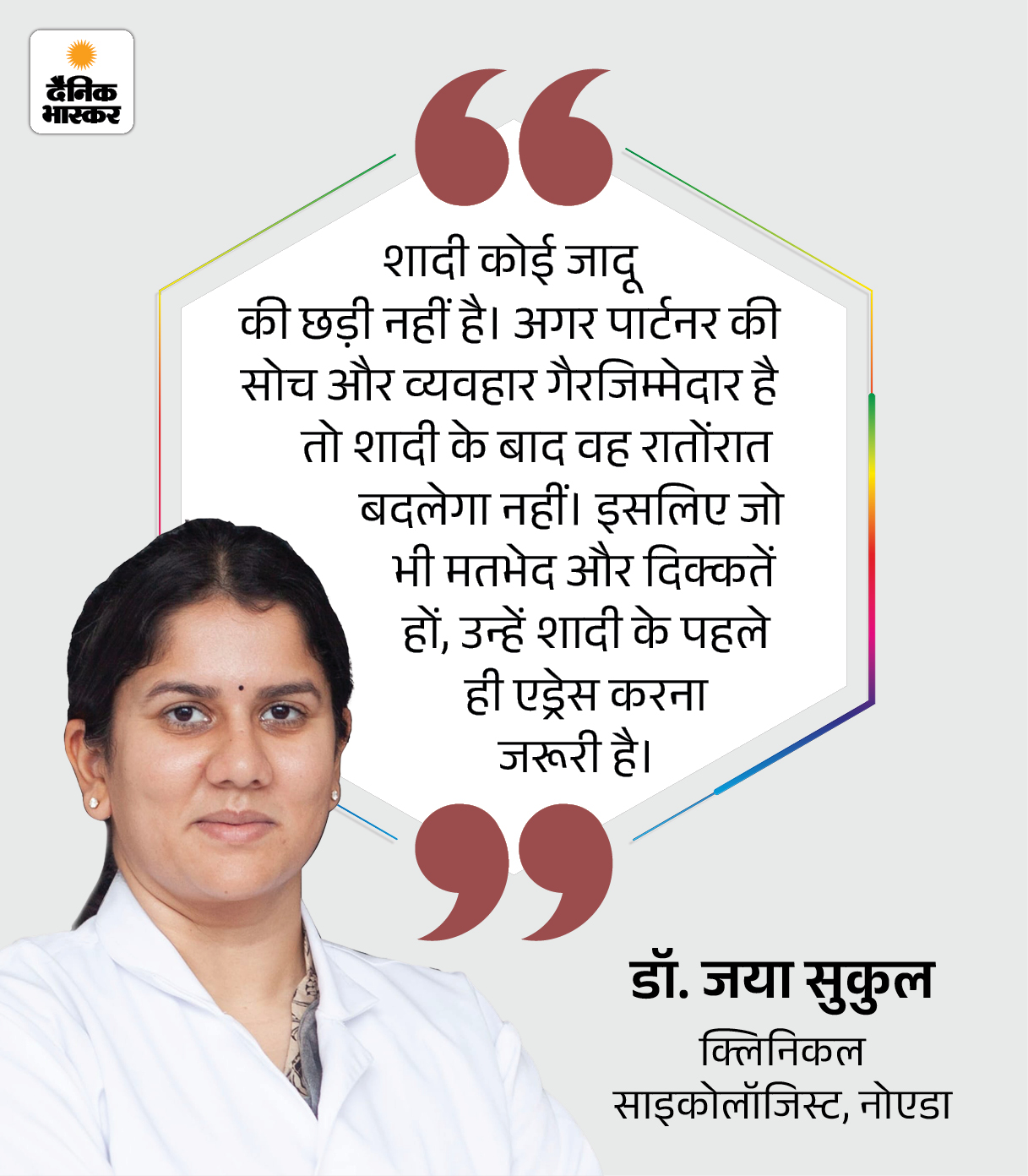 अक्सर लोग सोचते हैं कि शादी के बाद सब ठीक हो जाएगा। लेकिन सच ये है कि शादी कोई जादू की छड़ी नहीं है। शादी के बाद लोगों के व्यक्तित्व, व्यवहार या बेसिक पैटर्न नहीं बदलते। शादी के बाद ये पैटर्न ज्यादा खुलकर सामने आते हैं और दिखाई देने लगते हैं।