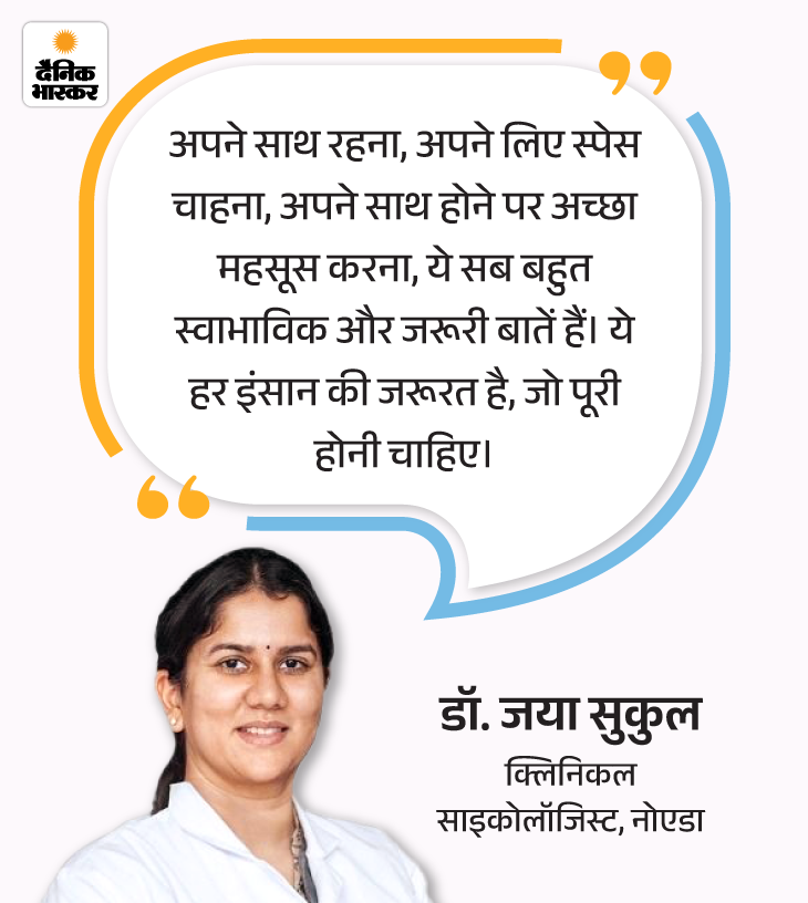 मुश्किल ये है कि हमारे समाज ने खुद के बारे में सोचने को स्वार्थ से जोड़ दिया है। महिलाओं के लिए तो ये और भी मुश्किल है। अगर कोई महिला कहती है कि उसे अकेले रहना अच्छा लगता है या उसे थोड़ा स्पेस चाहिए तो उस पर तुरंत सवाल खड़े कर दिए जाते हैं। क्या रिश्ता ठीक नहीं है? क्या शादी में प्यार कम हो गया है? क्या पति से दूर जाना चाहती हो?