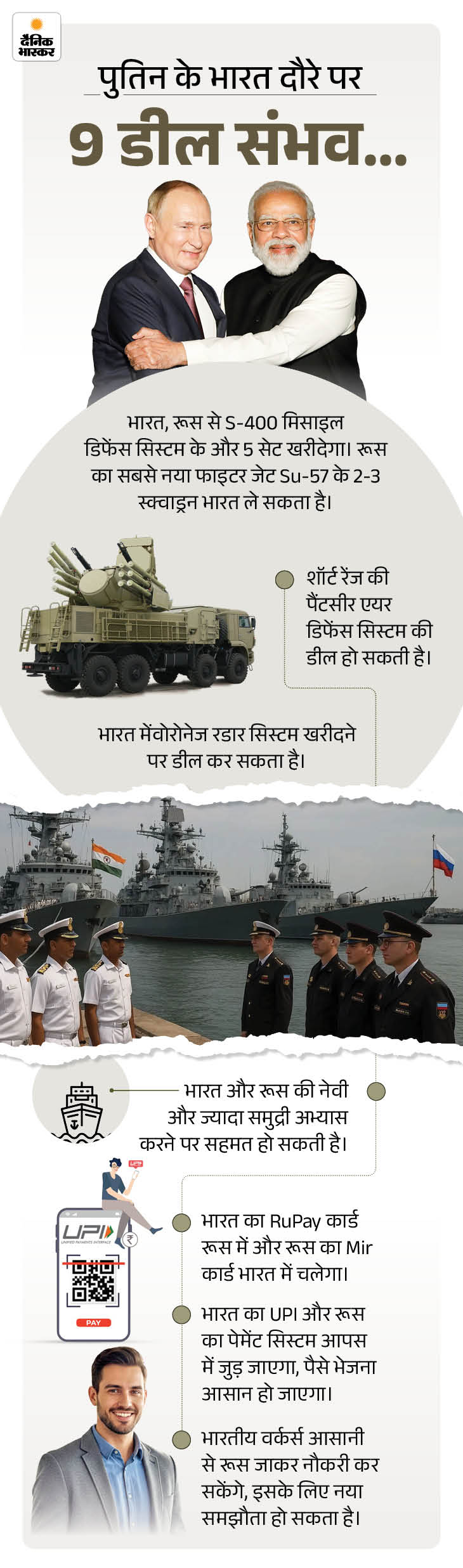 पुतिन की इस यात्रा में सबसे ज्यादा फोकस डिफेंस समझौते पर रहेगा। रूस पहले ही कह चुका है कि वो भारत को अपना SU-57 स्टेल्थ फाइटर जेट देने के लिए तैयार है।