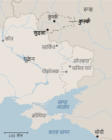 यूक्रेन ने 6 अगस्त को रूस के कुर्स्क इलाके पर हमला शुरू किया था। उसने 13 अगस्त तक 1000 वर्ग किमी इलाके पर कब्जा कर लिया। न्यूयॉर्क टाइम्स के मुताबिक सेकेंड वर्ल्ड वार के बार पहली बार है किसी देश ने रूस की सीमा में घुसपैठ की है।