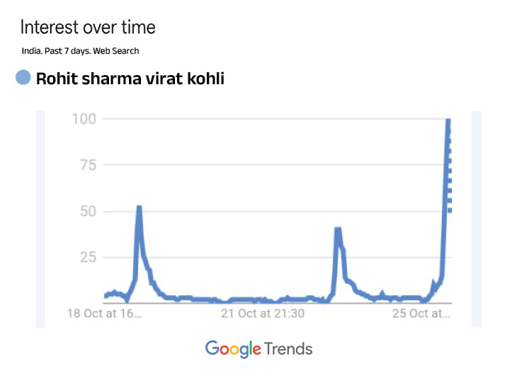 ऑस्ट्रेलिया के खिलाफ तीसरे वनडे में रोहित शर्मा ने सेंचुरी और विराट कोहली ने हाफ सेंचुरी लगाई। इसके बाद लोग उन्हें गूगल पर सर्च कर रहे हैं। नीचे देखें गूगल ट्रेंड… सोर्स: GOOGLE TREND ——————————————————-
