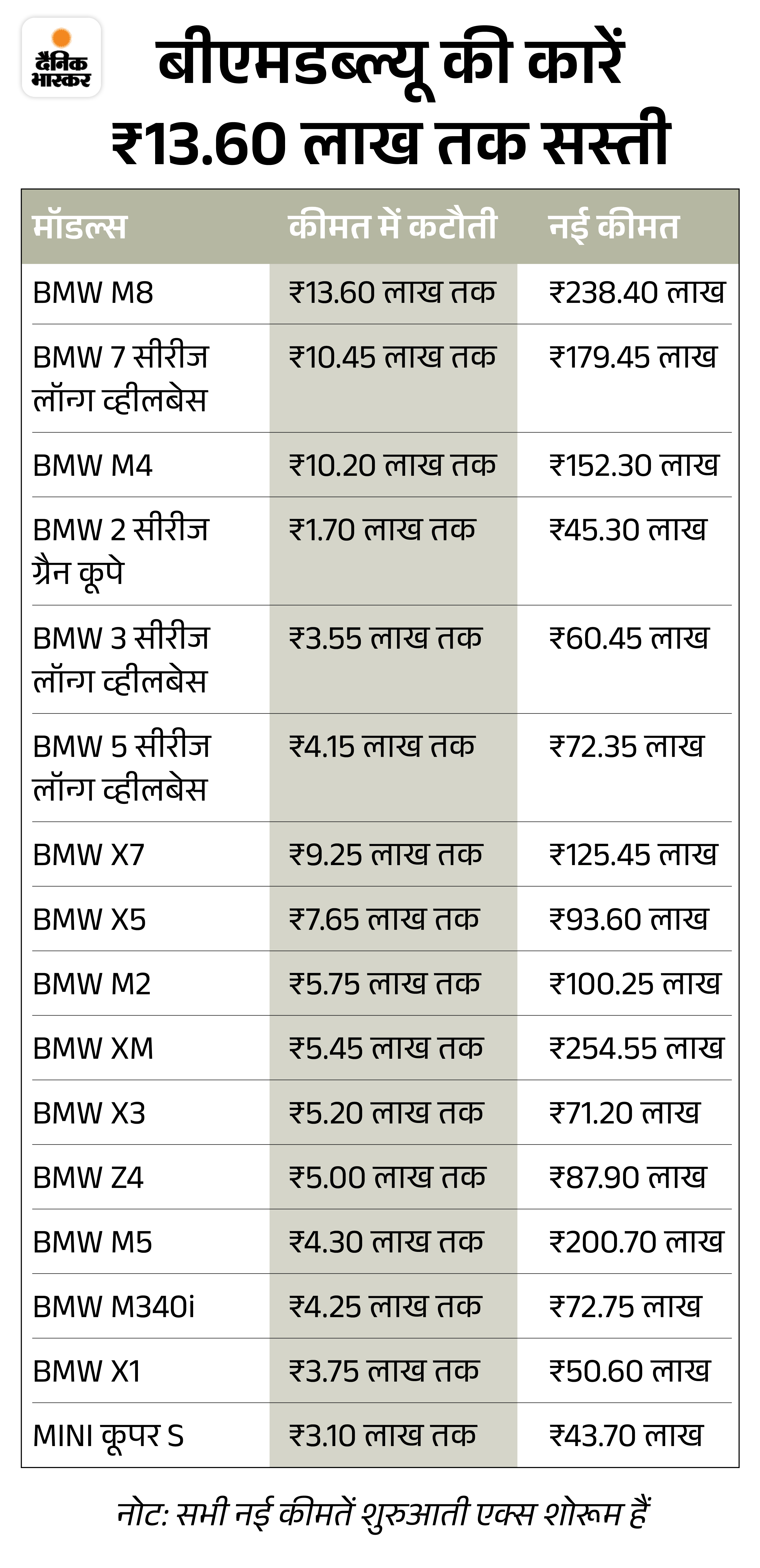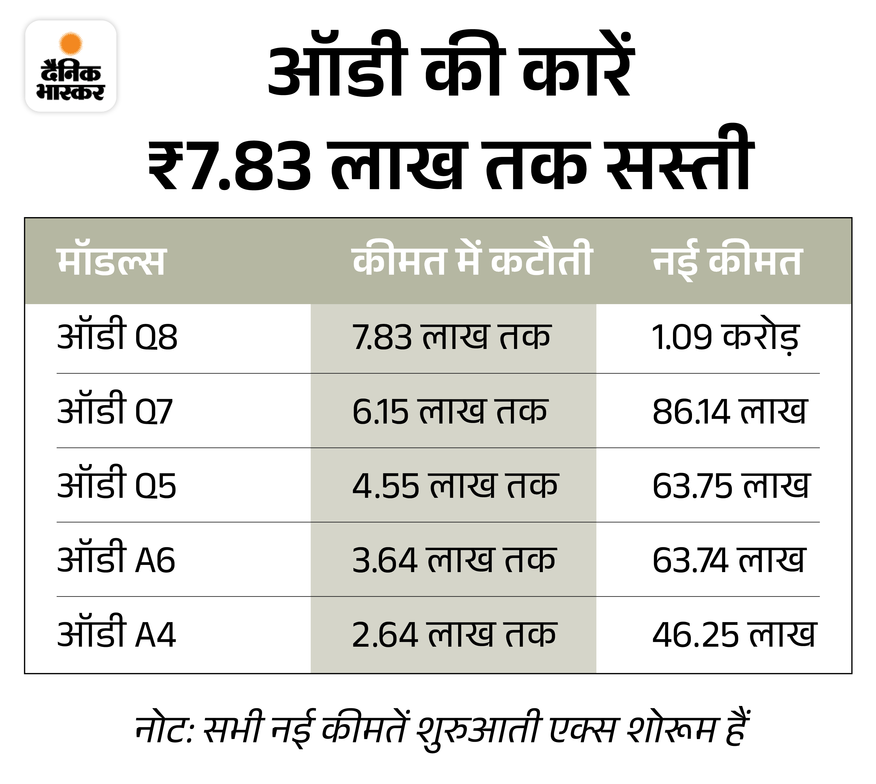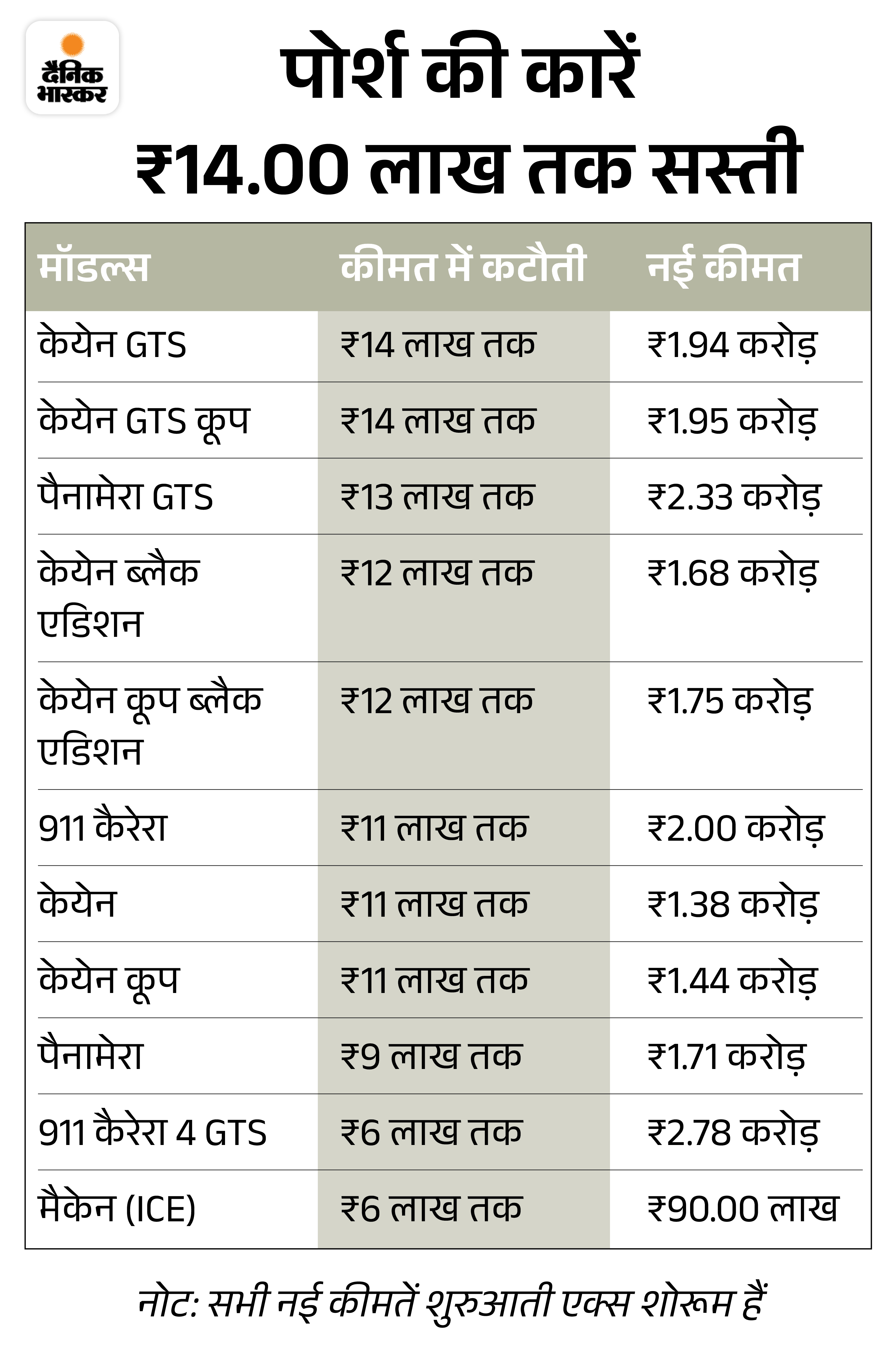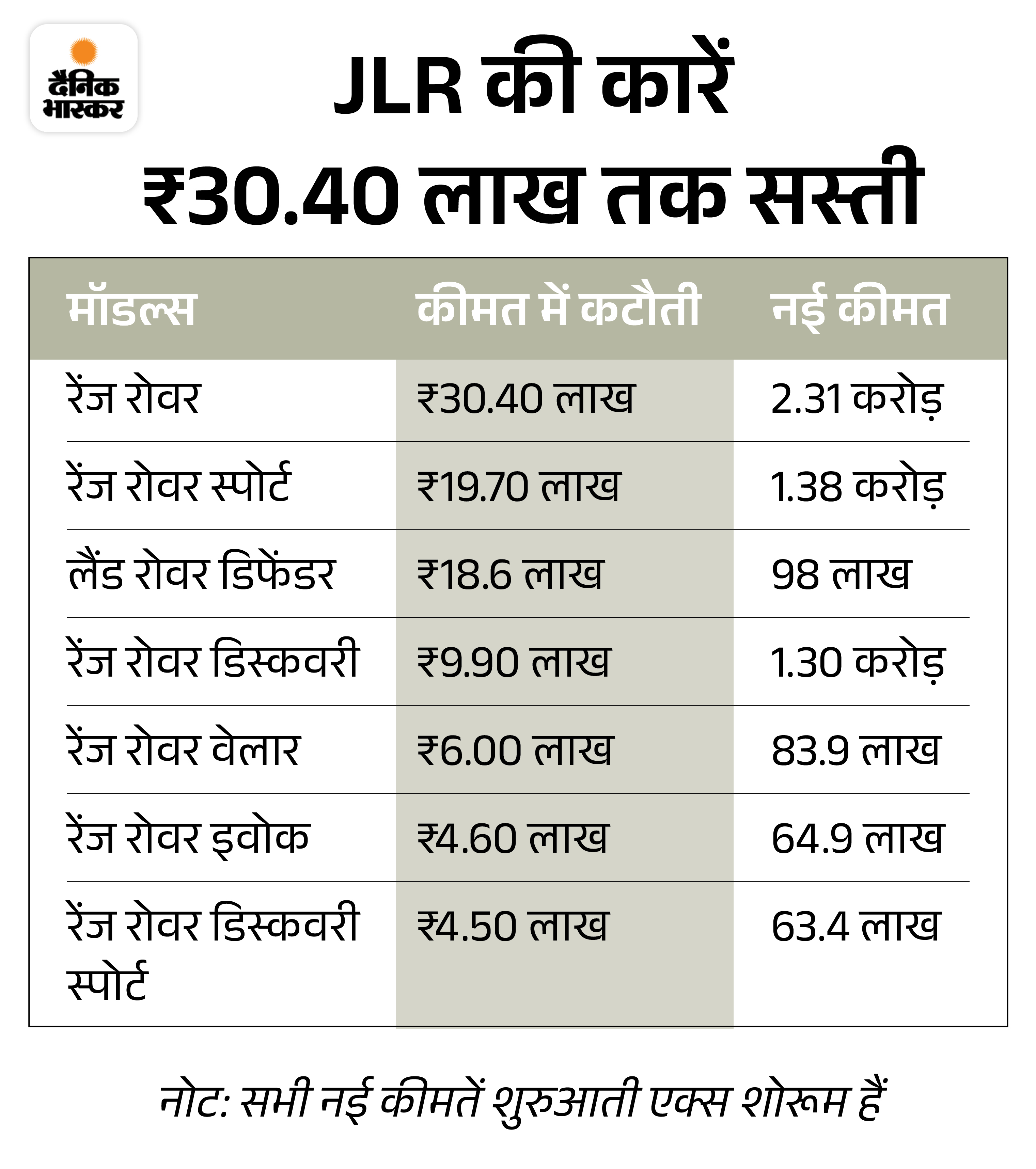 ऐसे में JLR, मर्सिडीज,ऑडी, पोर्श और बीएमडब्ल्यू की लग्जरी कारें अब 5% से 10% यानी 2.40 लाख रुपए से लेकर 30.40 लाख रुपए तक सस्ती हो गई हैं। तो आइए ग्राफिक्स में जानते हैं कौन सी लग्जरी कार कितने रुपए तक सस्ती हुई।