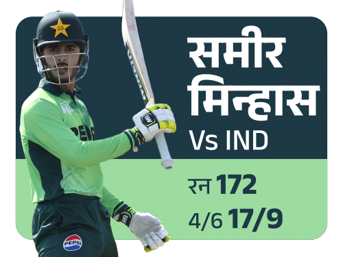 29वां ओवर डाल रहे दीपेश देवेंद्रन की गेंद पर समीर मिन्हास ने शानदार चौका जड़ा और इसी के साथ अपना शतक पूरा किया। ऑफ स्टंप पर पड़ी गेंद को उन्होंने बल्ले के पूरे फेस से सीधा खेला। गेंद मिड-ऑन पर डाइव लगाते फील्डर को चकमा देती हुई बाउंड्री के पार चली गई। शतक पूरा होते ही डगआउट में मौजूद सभी साथी खिलाड़ी खड़े होकर तालियां बजाते नजर आए।