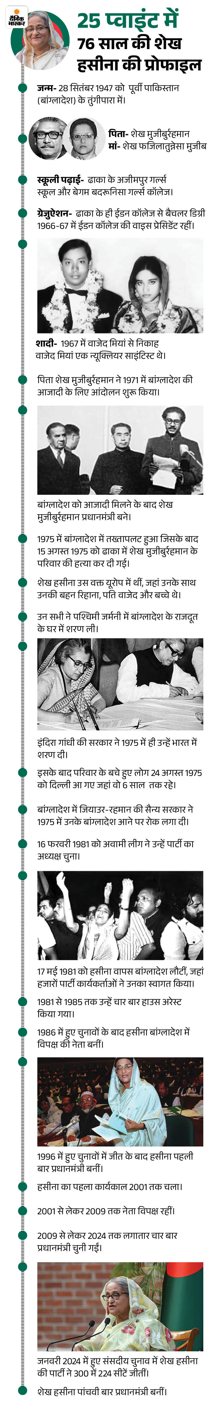 राजधानी ढाका सहित देशभर में सेना तैनात कर दी गई है। कुछ समय पहले तक शेख हसीना को दुनिया के प्रभावशाली लीडर्स में गिना जा रहा था। उन्हें बांग्लादेश की इकोनॉमी को बदलने वाला मसीहा कहा जाता था।