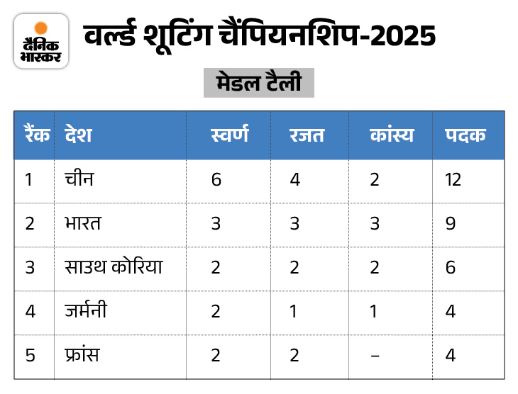 सम्राट राणा ने वर्ल्ड शूटिंग चैंपियनशिप में गोल्ड दिलाया:  भारत 9 मेडल के साथ नंबर-2 पर आया, मनु-ईशा 10 मीटर एयर पिस्टल में मेडल चूकीं Today Sports News