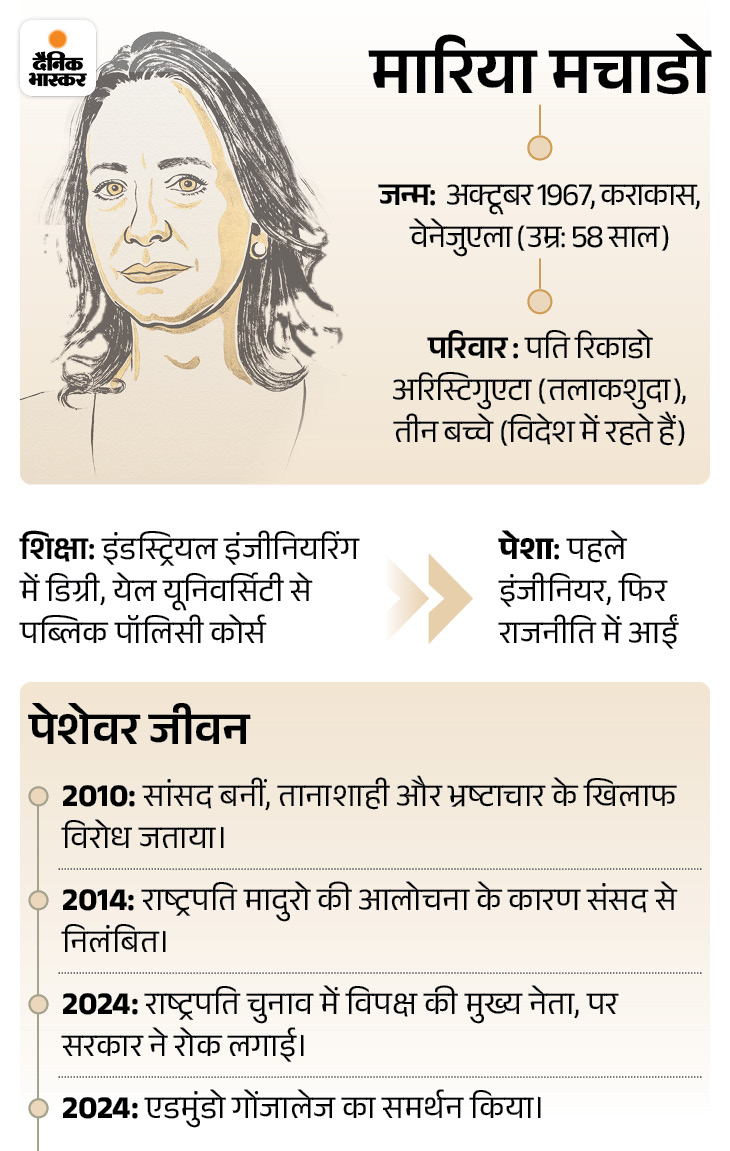 सरकार के डर से नोबेल प्राइज नहीं ले पाईं मचाडो: गिरफ्तारी का खतरा, छुपकर रह रहीं, नोबेल कमेटी बोलीं- रास्ते में हैं, रात तक पहुंचेंगी