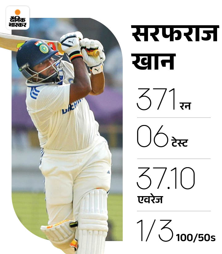 सिलेक्टर ने कहा- पंत, वॉशिंगटन सुंदर, जडेजा और रेड्डी…अगर सभी फिट और उपलब्ध रहे तो ऑलराउंडर होने के कारण मध्यक्रम में जगह बना लेंगे। जब पंत चोटिल होंगे तो ध्रुव जुरेल 5वें या छठे नंबर पर बल्लेबाजी करेंगे। न्यूजीलैंड के खिलाफ स्पिनर की अनुकूल पिच पर सरफराज की लगातार चार मैचों में फ्लॉप होने के बाद बाहर हुए थे।