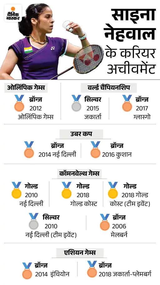 ओलिंपिक मेडल जीतने वाली भारत की पहली बैडमिंटन खिलाड़ी पूर्व वर्ल्ड नंबर-1 साइना ने लंदन ओलिंपिक-2012 में भारत को ब्रॉन्ज मेडल दिलाया था। वे ओलिंपिक मेडल जीतने वाली पहली भारतीय बैडमिंटन खिलाड़ी हैं। उन्होंने 3 ओलिंपिक गेम्स में भारत का प्रतिनिधित्व किया। साइना ने 2010 और 2018 के कॉमनवेल्थ गेम्स में गोल्ड मेडल जीते हैं।