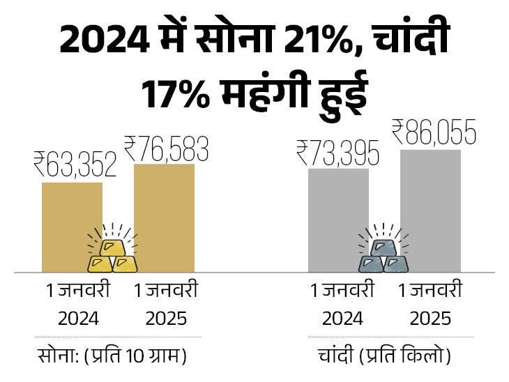 इस साल सोना ₹47,607 और चांदी ₹87,108 महंगी हुई