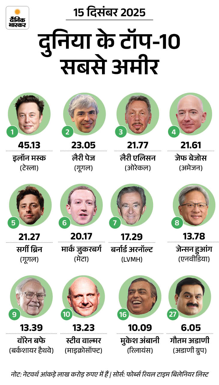 कल दुनिया के टॉप-10 सबसे अमीर कौन रहे यह भी देख लीजिए…