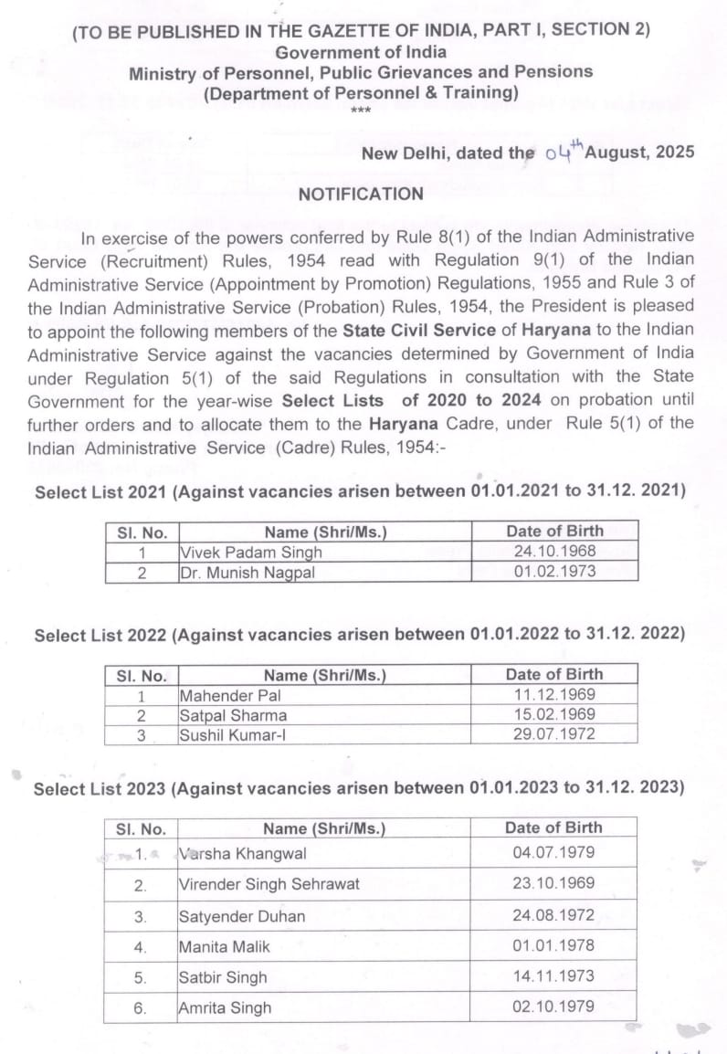 हरियाणा के 15 HCS अधिकारी बने IAS अफसर: 9 को प्रोविजनल प्रमोशन; केंद्र ने जारी किया नोटिफिकेशन; हाईकोर्ट में भी चल रहा केस – Haryana News