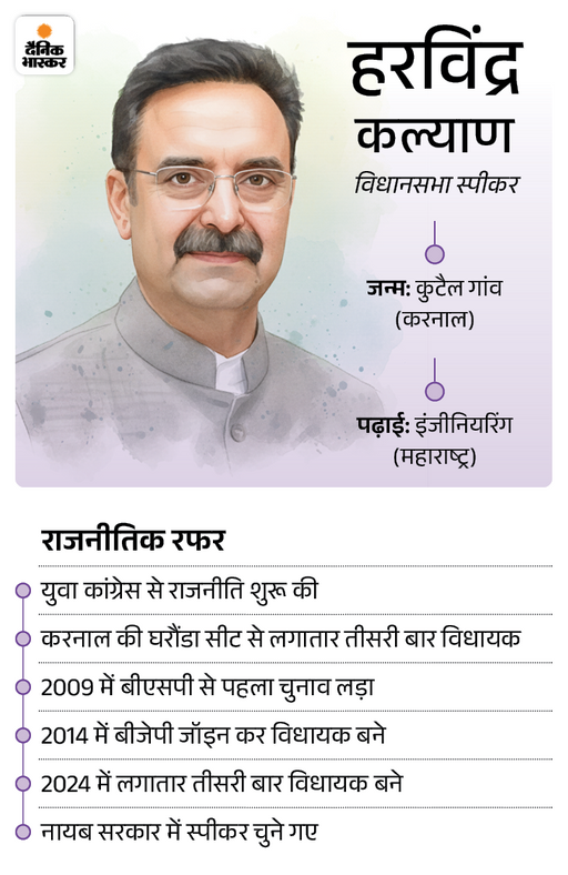 हरविंद्र कल्याण भारतीय जनता पार्टी के वरिष्ठ नेता और हरियाणा विधानसभा के अध्यक्ष हैं। वर्ष 2024 में उन्हें सर्वसम्मति से हरियाणा विधानसभा का 18वां स्पीकर चुना गया था। वे करनाल जिले की घरौंडा विधानसभा सीट से तीन बार विधायक रह चुके हैं और अपने सादगीपूर्ण व अनुशासित नेतृत्व के लिए जाने जाते हैं। उनके पिता देवी सिंह कल्याण हरियाणा एग्रो इंडस्ट्रीज कॉर्पोरेशन के पूर्व चेयरमैन रह चुके हैं।