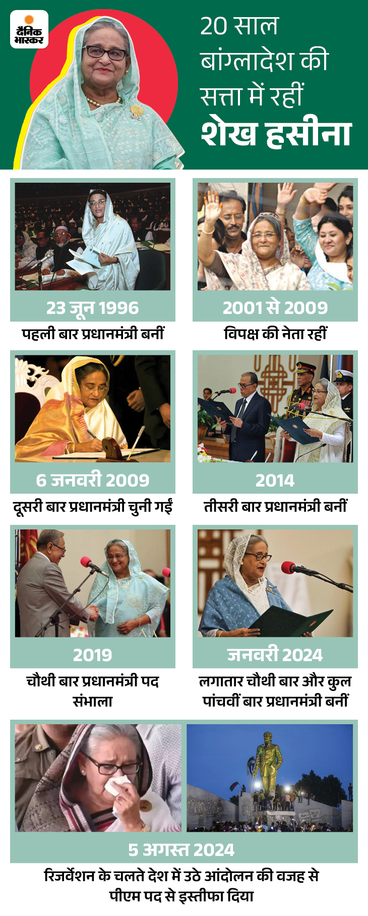 शेख हसीना पिछले साल 5 अगस्त को तख्तापलट के बाद भारत गईं थीं, तब से वे यहीं रह रहीं हैं।