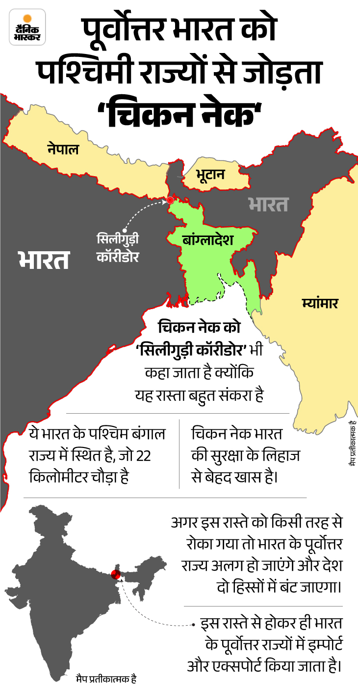सिलीगुड़ी कॉरिडोर (चिकन नेक) को लेकर दिए जा रहे बयानों पर हसीना ने कहा कि पड़ोसी देश को धमकाना गैर-जिम्मेदाराना है और यह बांग्लादेशी जनता की सोच नहीं है। उन्होंने भरोसा जताया कि लोकतंत्र लौटते ही ऐसे बयान खत्म हो जाएंगे।