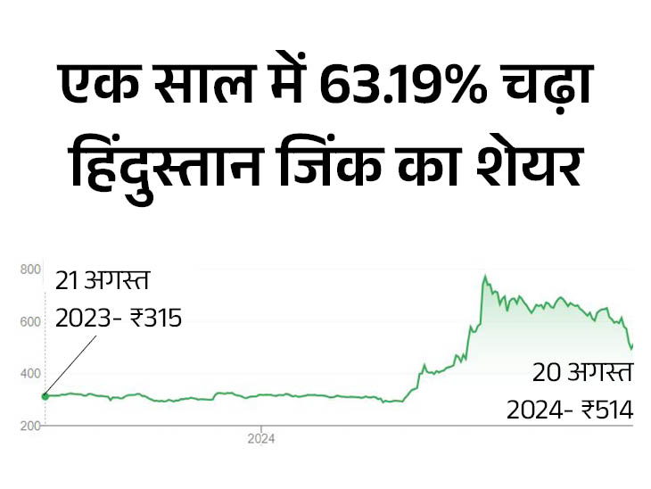 पिछले 6 महीने में कंपनी के शेयर ने 65.28% और एक साल में 63.19% का रिटर्न दिया है। इस साल यानी 1 जनवरी 2024 से अब तक की बात करें तो हिंदुस्तान जिंक का शेयर 61.52% चढ़ा है। कंपनी का मार्केट कैप 2.16 लाख करोड़ रुपए है।