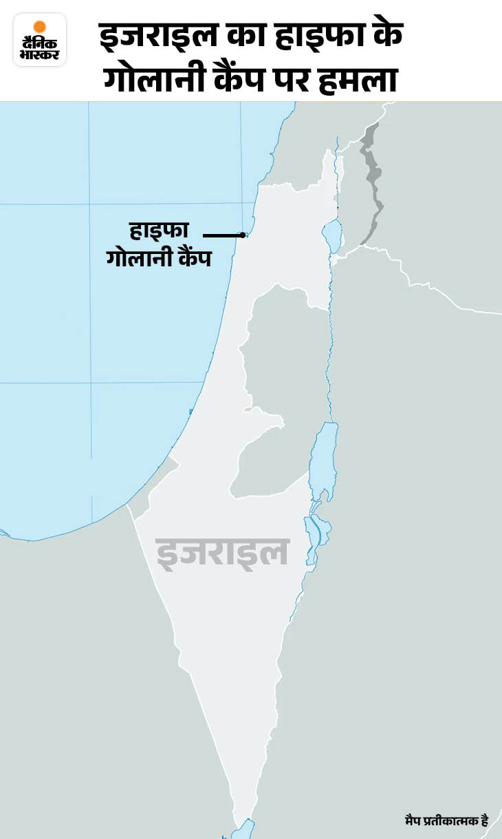 हिजबुल्लाह ने रविवार रात इजराइल के हाइफा इलाके में गोलानी मिलिट्री बेस पर हमला किया। इजराइल डिफेंस फोर्स (IDF) के मुताबिक इस हमले में 4 सैनिकों की मौत हो गई और कम से कम 58 सैनिक घायल हुए हैं। इनमें 7 गंभीर रूप से घायल हैं।