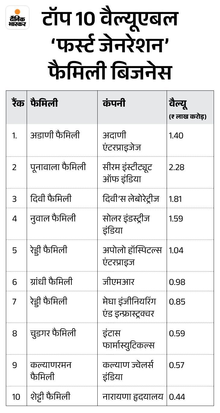 फर्स्ट जेनरेशन फैमिली बिजनेस में अडाणी पहले नंबर पर