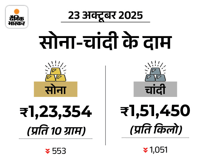 1. 10 दिन में ₹26,650 सस्ती हुई चांदी: ₹1,51,450 kg बिक रही; सोने का दाम आज ₹553 घटकर ₹1,23,354 पर आया