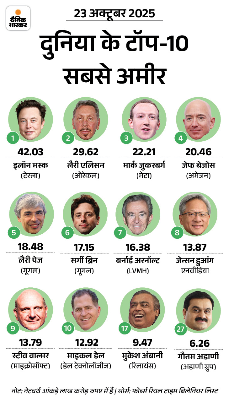 कल दुनिया के टॉप-10 सबसे अमीर कौन रहे यह भी देख लीजिए…