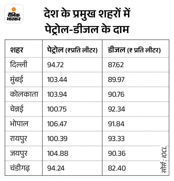 पेट्रोल-डीजल के दामों में बदलाव नहीं