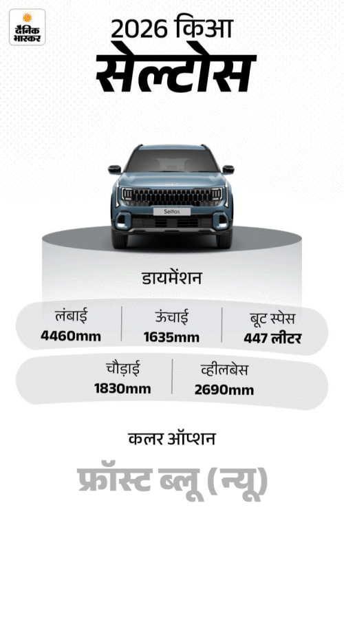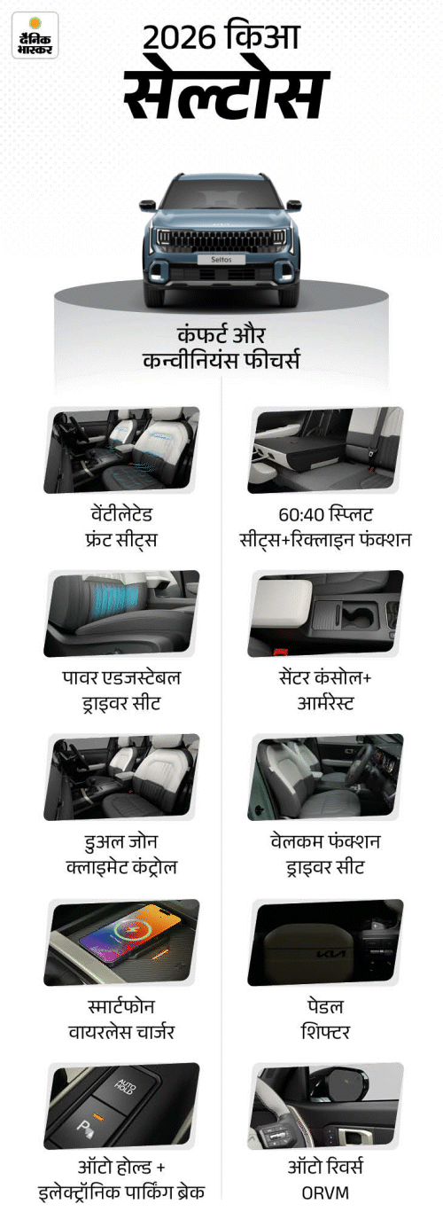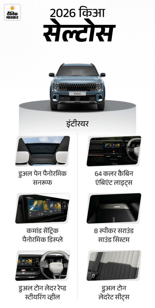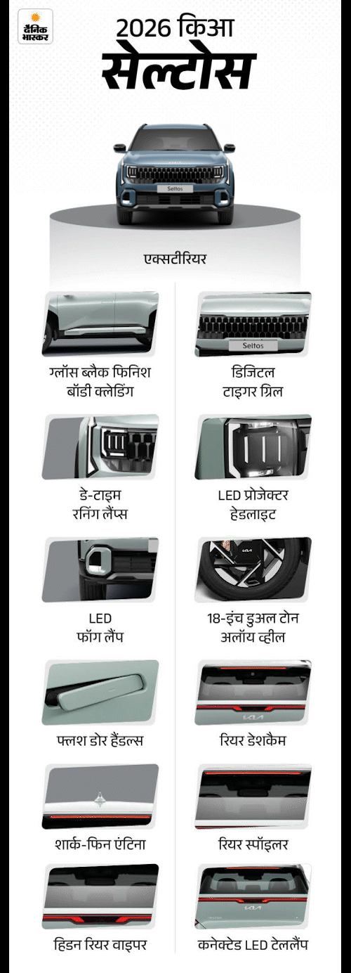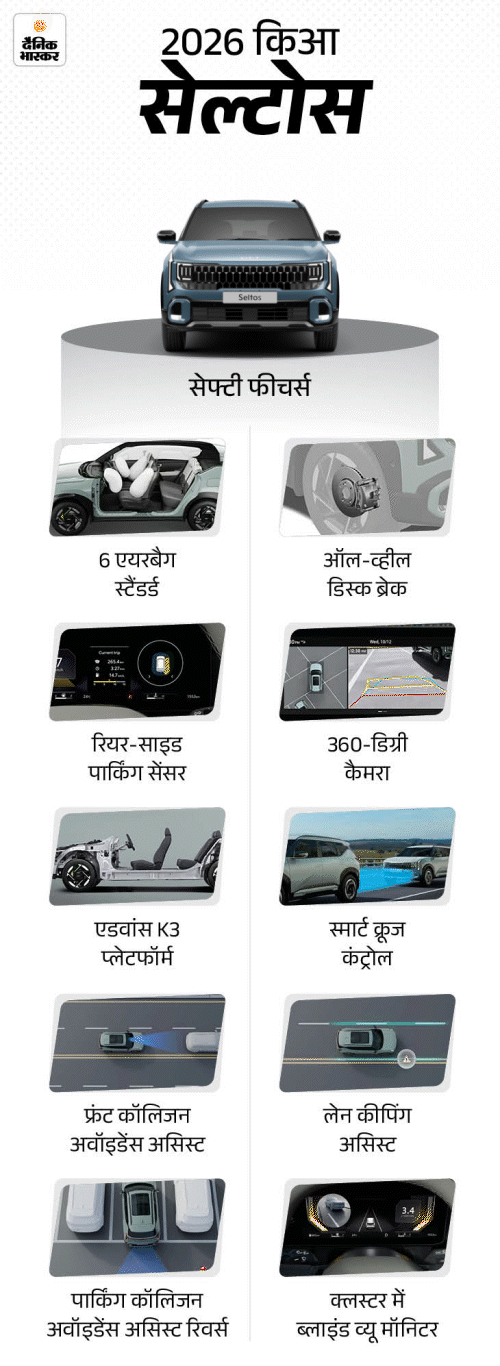 2026 किआ सेल्टोस फेसलिफ्ट रिवील: मिड साइस SUV में 21 ऑटोनोमस ड्राइविंग सेफ्टी फीचर्स, एक्सपेक्टेड प्राइस ₹11 लाख