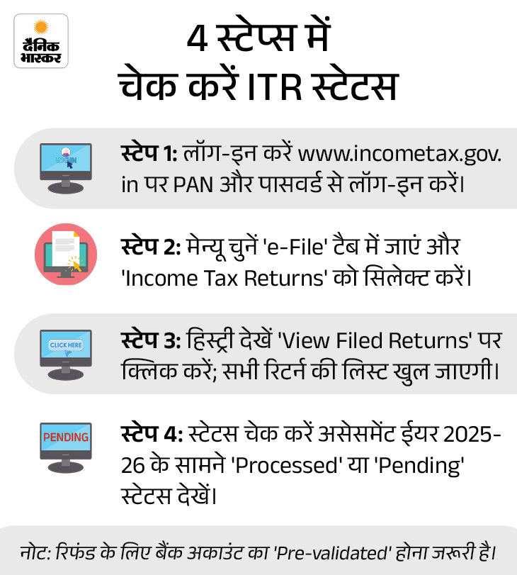 - पोर्टल चेक करें: इनकम टैक्स की वेबसाइट पर जाकर अपना ‘रिटर्न स्टेटस’ देखें।
