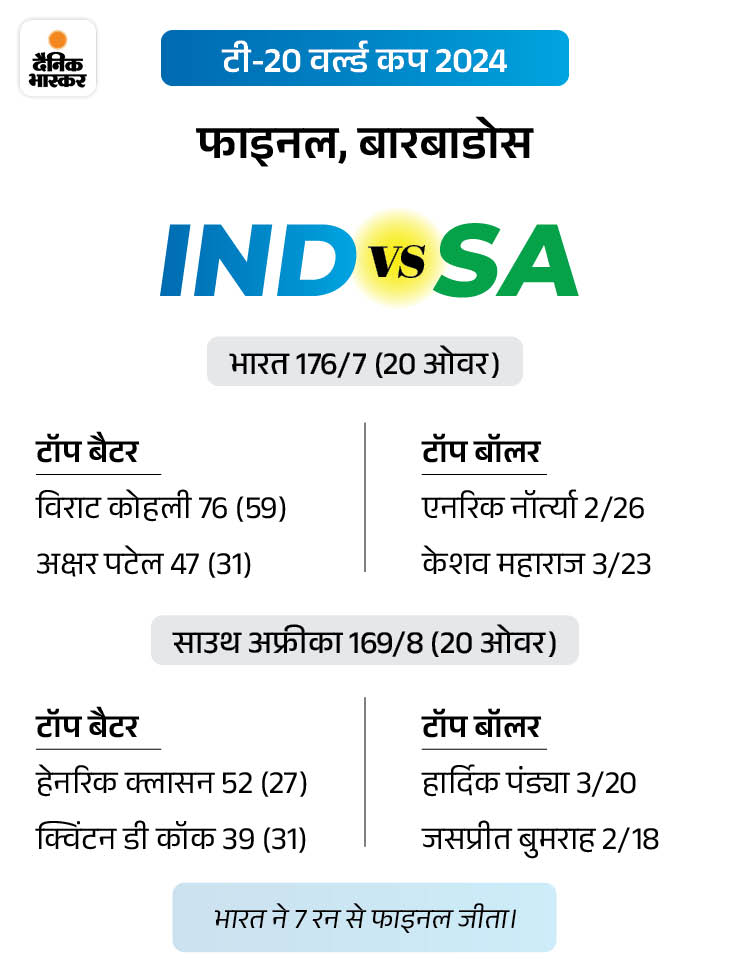 वनडे वर्ल्ड कप में करीबी हार के बाद साउथ अफ्रीका ने अगले ही साल टी-20 वर्ल्ड कप में वापसी कर ली। टीम ने अफगानिस्तान को सेमीफाइनल हराया और फाइनल में एंट्री कर ली। जहां बारबाडोस में भारत से उनका सामना हुआ।