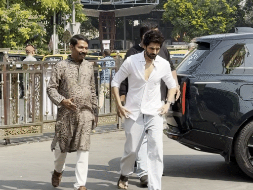 मंदिर में दर्शन करने के बाद कार्तिक ने फैंस के साथ फोटो क्लिक कराई। जो लोग उनका स्वागत करने आए थे, उन्होंने उनका गुलदस्ता स्वीकार किया। इस दौरान वहां मौजूद पैपराजी और फैंस ने कार्तिक को बर्थडे विश किया, जिसके लिए उन्होंने सबका धन्यवाद किया।
