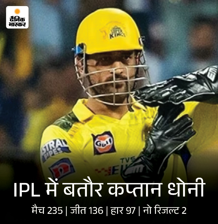 IPL में 100 मैच जीतने वाले इकलौते कप्तान धोनी IPL में 100 मैच जीतने वाले एकमात्र कप्तान हैं। उन्होंने IPL में सबसे ज्यादा 226 मैचों में कप्तानी की है। इस लिस्ट में दूसरे नंबर पर रोहित शर्मा हैं। उन्होंने 158 मैचों में कप्तानी की है। धोनी ने अपनी कप्तानी में CSK को 2023 में आखिरी बार चैंपियन बनाया था। उसी फाइनल में उन्होंने आखिरी बार कप्तानी भी की थी। धोनी अपनी कप्तानी में टीम को 133 मैचों में जीत दिला चुके हैं। जबकि 91 में टीम को हार मिली।