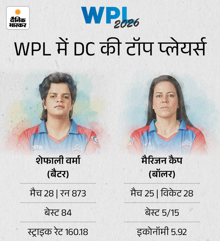 हेड टु हेड में दिल्ली आगे WPL के 3 सीजन में दोनों टीमों के बीच 6 मैच खेले गए। 4 में दिल्ली और महज 2 में गुजरात को जीत मिल सकी। डीवाय पाटील स्टेडियम में दोनों के बीच एक ही मैच खेला गया, इसमें भी दिल्ली को ही जीत मिली।